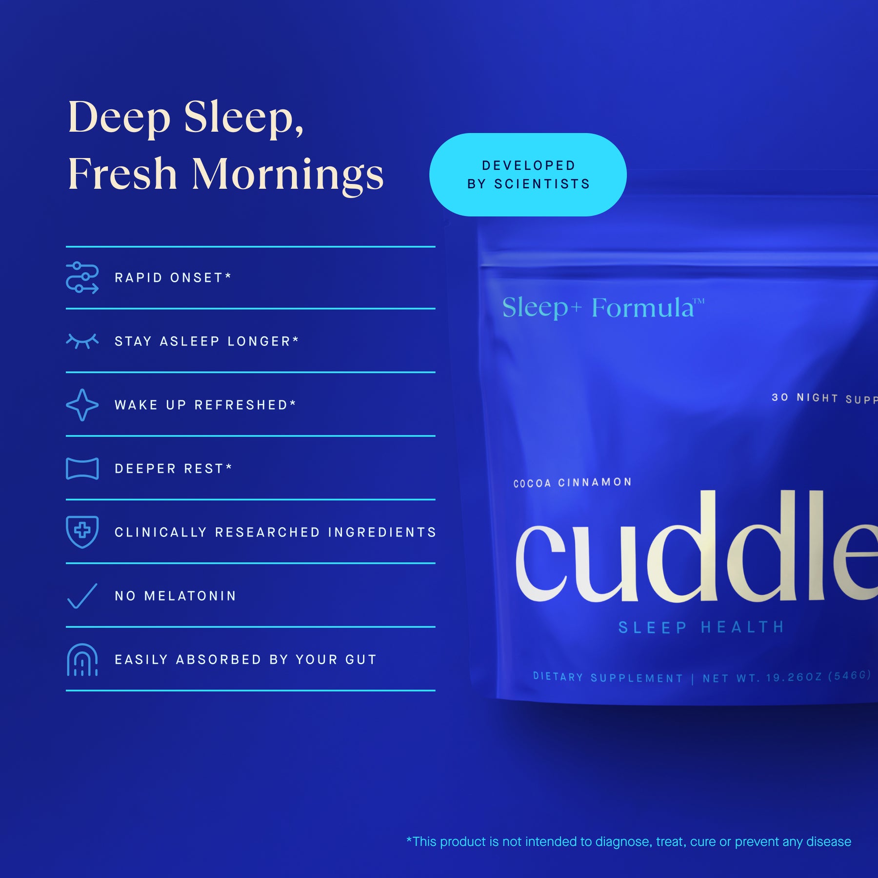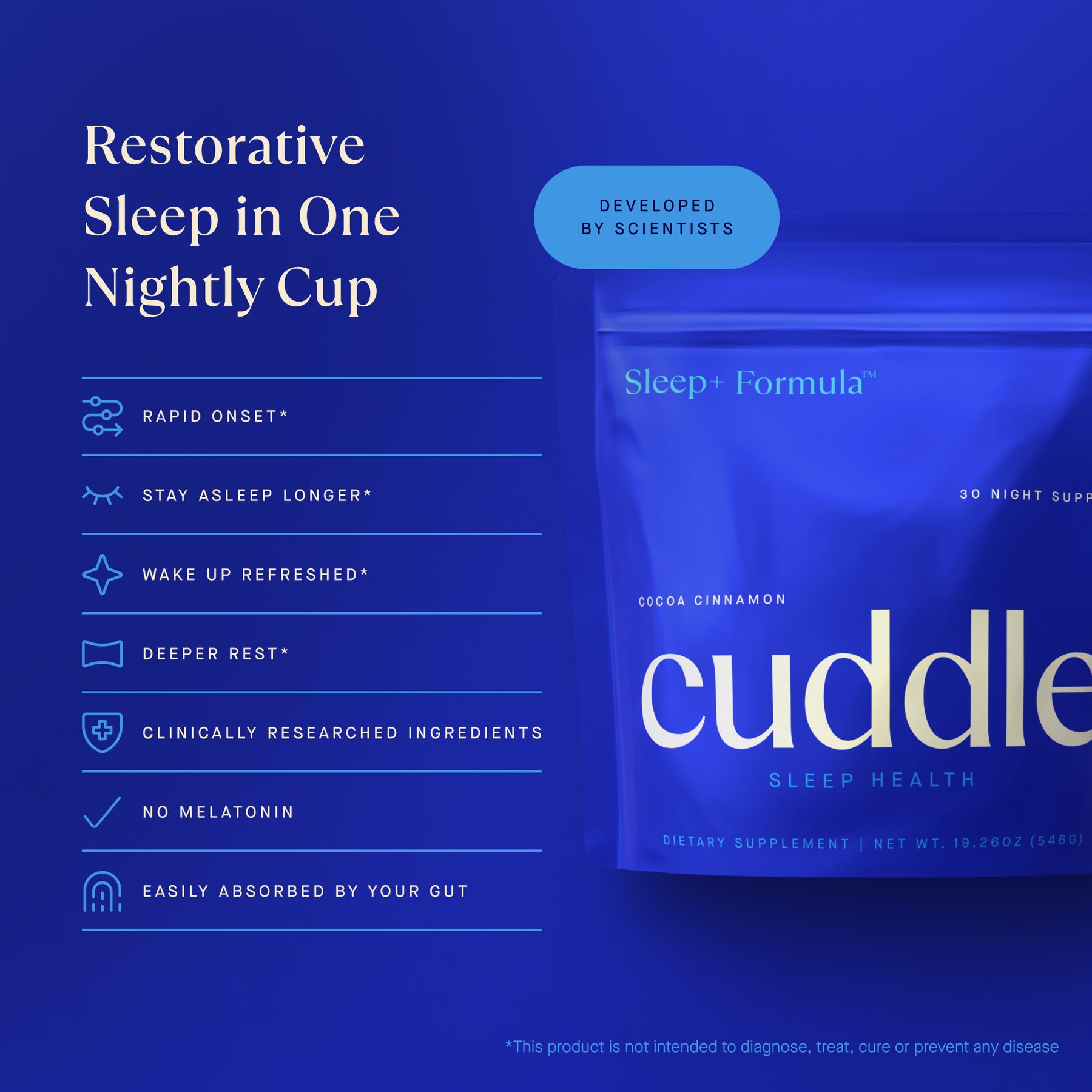 Cuddle Sleep+ Formula should be taken at night during your nighttime routine 30-60 minutes before bed for optimal results.