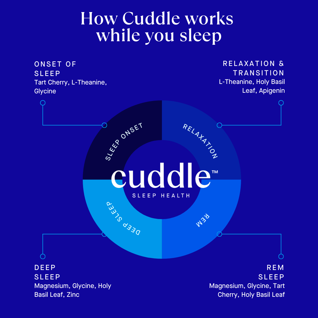 Note: Individual experiences may vary. For optimal results, combine Cuddle Sleep+ Formula™ with healthy sleep practices, such as maintaining a consistent sleep schedule and creating a relaxing bedtime routine.